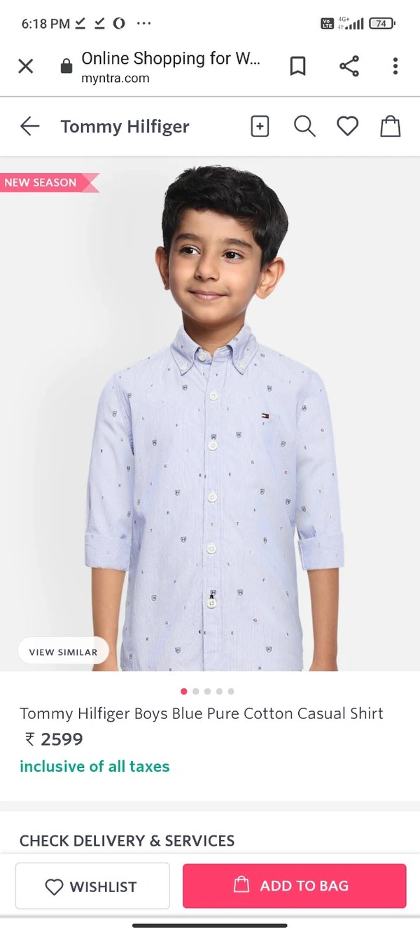 Tommy Hilfiger Boys Blue Pure Cotton Casual Shirt